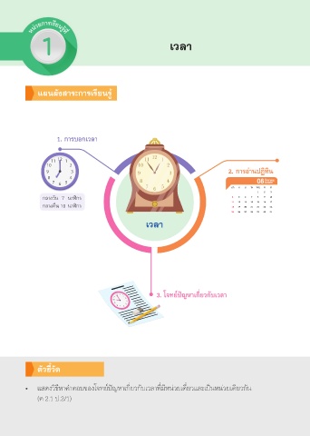 • แสดงวิธีหาคำาตอบของโจทย์ปัญหาเกี่ยวกับเวลาที่มีหน่วยเดี่ยวและเป็นหน่วยเดียวกัน