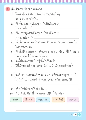 9) เดือนใดมีจำานวนวันน้อยที่สุด