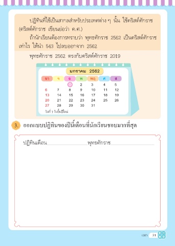 3. ออกแบบปฏิทินของปีนี้เดือนที่นักเรียนชอบมากที่สุด