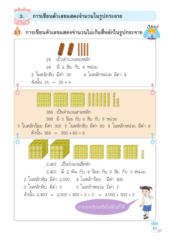 2,403 มี 2 พัน กับ 4 ร้อย กับ 0 สิบ กับ 3 หน่วย