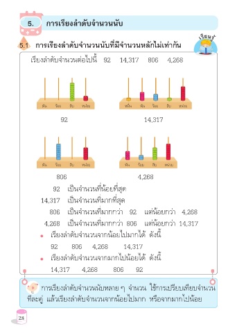5.1 ก�รเรียงลำ�ดับจำ�นวนนับที่มีจำ�นวนหลักไม่เท่�กัน