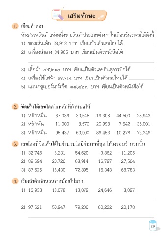5) แผนกซูเปอร์มาร์เก็ต ๙๘,๔๒๗ บาท เขียนเป็นตัวหนังสือได้