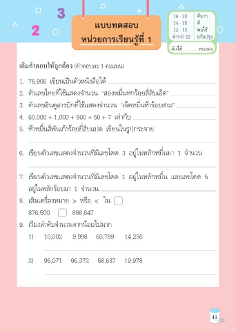 6. เขียนตัวเลขแสดงจำานวนที่มีเลขโดด 3 อยู่ในหลักหมื่นมา 1 จำานวน