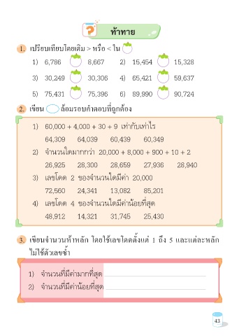 1. เปรียบเทียบโดยเติม > หรือ < ใน