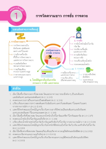 1. เลือกใช้เครื่องวัดความยาวที่เหมาะสม วัดและบอกความยาวของสิ่งต่าง ๆ เป็นเซนติเมตร