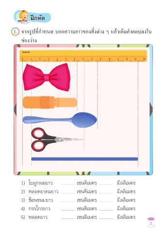 1) โบผูกผมยาว เซนติเมตร มิลลิเมตร