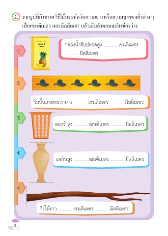 เป็นเซนติเมตร และมิลลิเมตร แล้วเติมคำาตอบลงในช่องว่าง
