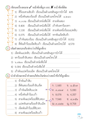 8) สี่พันห้าร้อยเจ็ดสิบเก้า เขียนเป็นตัวเลขไทยได้ 4,579