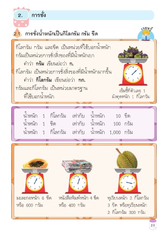 2.1 การชั่งนํ้าหนักเป็นก ิโลกรัม กรัม ขีด
