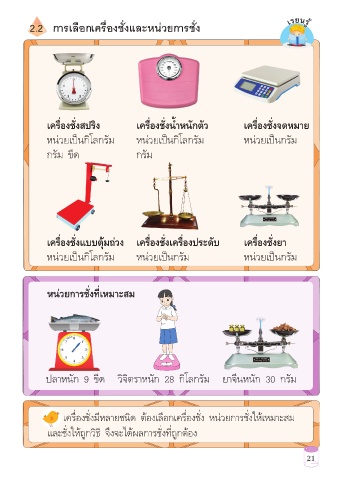 2.2 การเลือกเครื่องชั่งและหน่วยการชั่ง เรยนร
