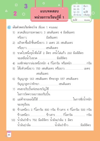 5) โต๊ะตัวหนึ่งยาว 150 เซนติเมตร หรือยาว เมตร