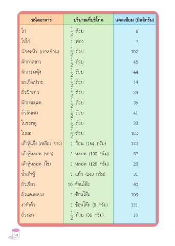 ชนิดอาหาร ปริมาณที่บริโภค แคลเซียม (มิลลิกรัม)