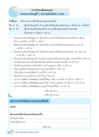 ขีด 3 ใน เมื่อนักเรียนเข้าใจ ทำาแบบฝึกหัดได้ถูกต้องเป็นส่วนมาก (ตั้งแต่ 50 % ขึ้นไป)