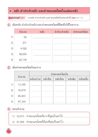 จุดประสงค์ 1.3 : บอกหลัก ค่าประจำาหลัก และค่าของเลขโดดในแต่ละหลักได้้ ( น.15-17)