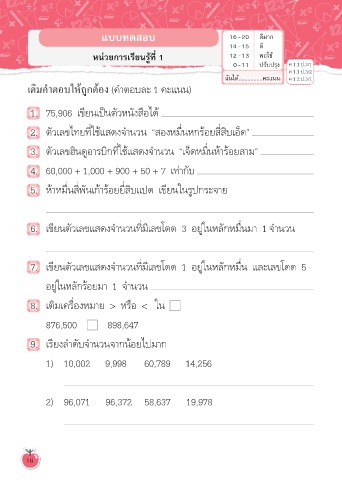 7. เขียนตัวเลขแสดงจำานวนที่มีเลขโดด 1 อยู่ในหลักหมื่น และเลขโดด 5