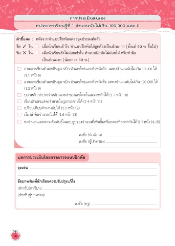 ขีด 3 ใน เมื่อนักเรียนเข้าใจ ทำาแบบฝึกหัดได้ถูกต้องเป็นส่วนมาก (ตั้งแต่ 50 % ขึ้นไป)