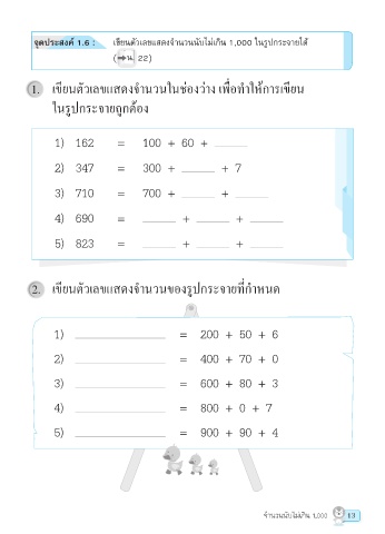 จุดประสงค์ 1.6 : เขียนตัวเลขแสดงจำานวนนับไม่เกิน 1,000 ในรูปกระจายได้