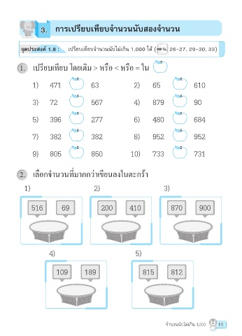 จุดประสงค์ 1.8 : เปรียบเทียบจำานวนนับไม่เกิน 1,000 ได้ ( น. 26-27, 29-30, 33)