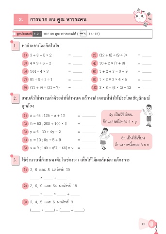 จุดประสงค์ 1.2 : บวก ลบ คูณ หารระคนได้ ( น. 14-15)