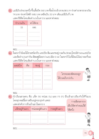แสดงวิธีคิดโดยเติมจำานวนในตาราง และหาคำาตอบ