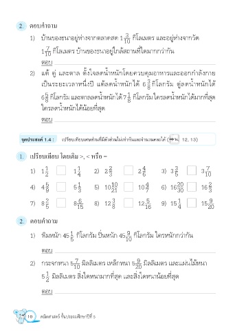 จุดประสงค์ 1.4 : เปรียบเทียบเศษส่วนที่มีตัวส่วนไม่เท่ากันและจำานวนคละได้ ( น. 12, 13)