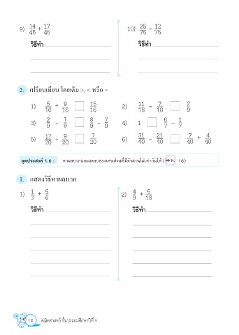 จุดประสงค์ 1.6 : หาผลบวกและผลลบของเศษส่วนที่มีตัวส่วนไม่เท่ากันได้ ( น. 16)