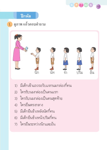 1) มีเด็กเข้�แถวรอรับแจกนมกล่องกี่คน