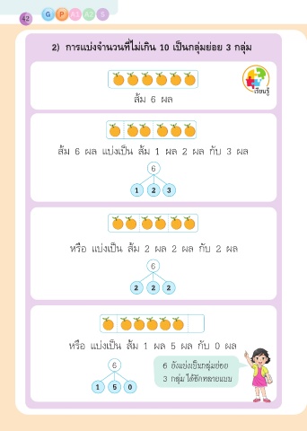 ส้ม 6 ผล แบ่งเป็น ส้ม 1 ผล 2 ผล กับ 3 ผล