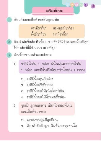 2. เรียงลำาดับชื่อสัตว์ในข้อ 1. จากสัตว์ที่มีจำานวนขาน้อยที่สุด