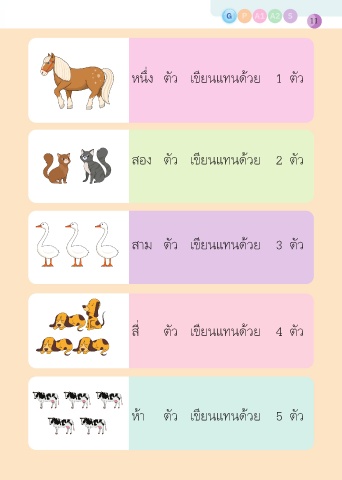 G G P A1 A2 S 11 หนึ่ง ตัว เขียนแทนด้วย 1 ตัว สอง ตัว เขียนแทนด้วย 2 ตัว ส�ม ตัว เขียนแทนด้วย 3 ตัว สี่ ตัว เขียนแทนด้วย 4 ตัว ห้� ตัว เขียนแทนด้วย 5 ตัว