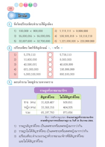 1. ข้อใดเปรียบเทียบจำานวนได้ถูกต้อง