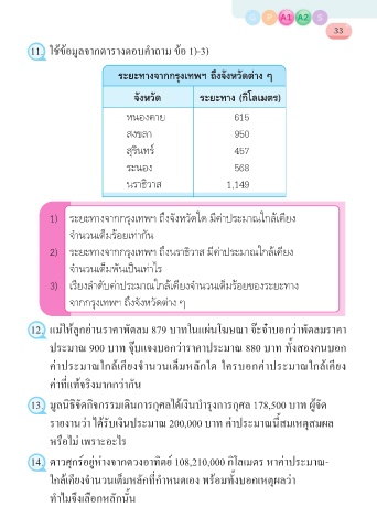 1) ระยะทางจากกรุงเทพฯ ถึงจังหวัดใด มีค่าประมาณใกล้เคียง