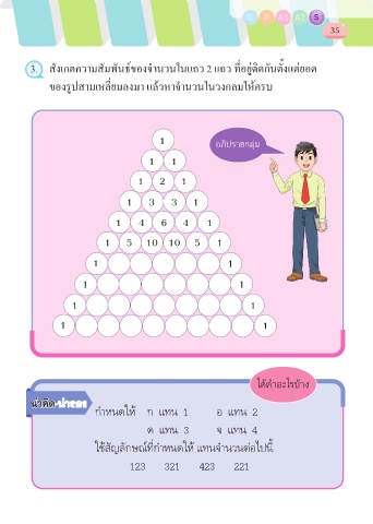 ของรูปสามเหลี่ยมลงมา แล้วหาจำานวนในวงกลมให้ครบ