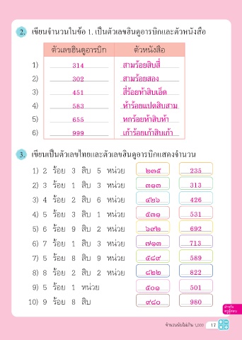 2. เขียนจํานวนในข้อ 1. เป็นตัวเลขฮินดูอารบิกและตัวหนังสือ