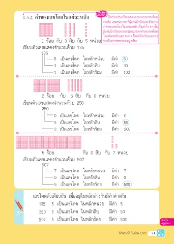 1.5.2 ค่าของเลขโดดในแต่ละหลัก นักเรียนร่วมกันบอกจานวนจากตารางร้อย