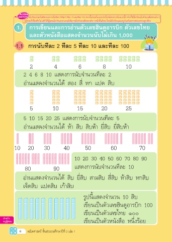 1.1 การนับทีละ 2 ทีละ 5 ทีละ 10 และทีละ 100