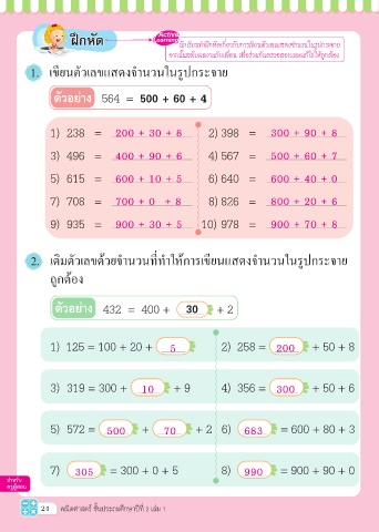 7) 305 = 300 + 0 + 5 8) 990 = 900 + 90 + 0