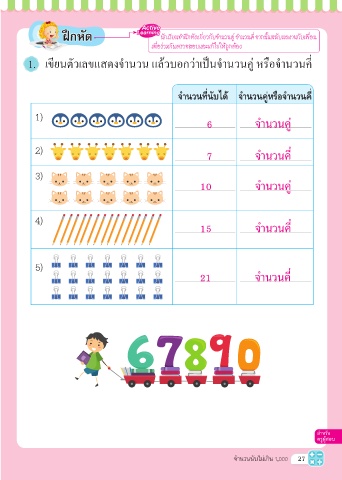 1. เขียนตัวเลขแสดงจํานวน แล้วบอกว่าเป็นจํานวนคู่ หรือจํานวนคี่