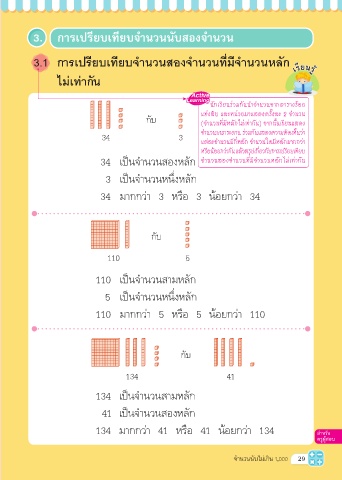 3.1 การเปรียบเทียบจำานวนสองจำานวนที่มีจำานวนหลัก