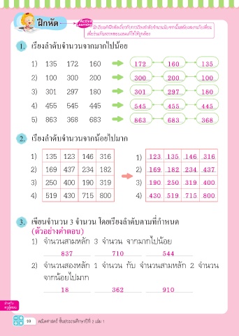 1) จำ�นวนส�มหลัก 3 จำ�นวน จ�กม�กไปน้อย