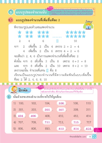 5.1 แบบรูปของจำานวนที่เพิ่มขึ้นทีละ 2