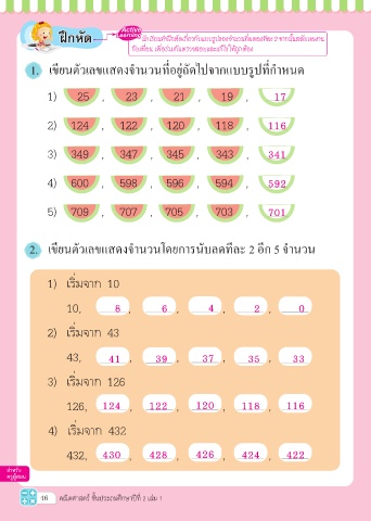 2. เขียนตัวเลขแสดงจํานวนโดยการนับลดทีละ 2 อีก 5 จํานวน