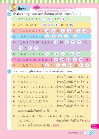 2) 7, 5, 3, 7, 5, 3, 7, 5, 3, … จำ�นวนในอันดับที่ 16 คือ 7