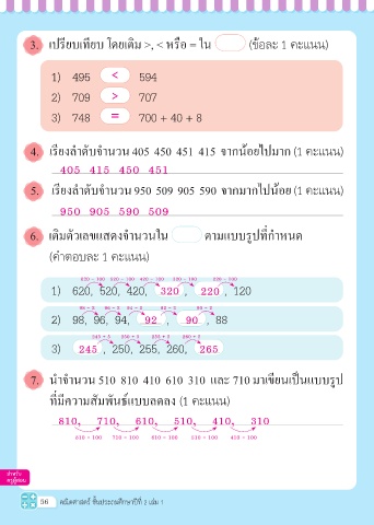 3. เปรียบเทียบ โดยเติม >, < หรือ = ใน (ข้อละ 1 คะแนน)