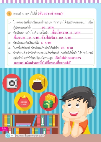 4) ในหนึ่งสัปด�ห์ นักเรียนเก็บเงินได้เท่�ไร 25 บาท