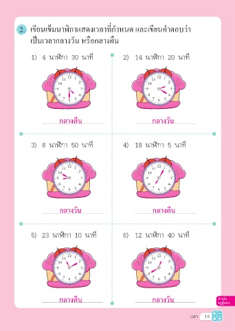 2. เขียนเข็มนาฬิกาแสดงเวลาที่กำาหนด และเขียนคำาตอบว่า