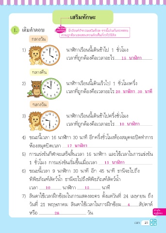1. เติมคำาตอบ นักเรียนทำากิจกรรมเสริมทักษะ จากนั้นร่วมกันตรวจสอบ