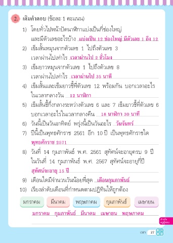 9) เดือนใดมีจำานวนวันน้อยที่สุด เดือนกุมภาพันธ์