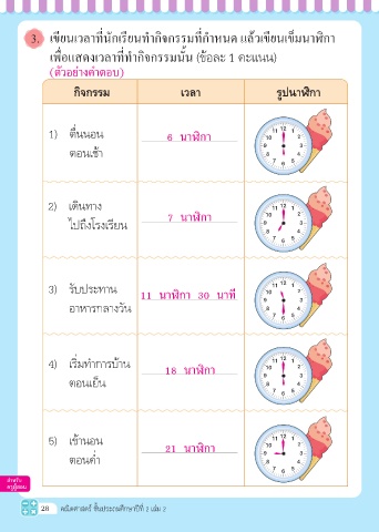 เพื่อแสดงเวลาที่ทำากิจกรรมนั้น (ข้อละ 1 คะแนน)