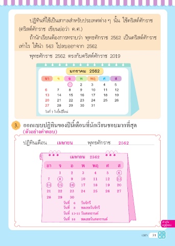 3. ออกแบบปฏิทินของปีนี้เดือนที่นักเรียนชอบมากที่สุด